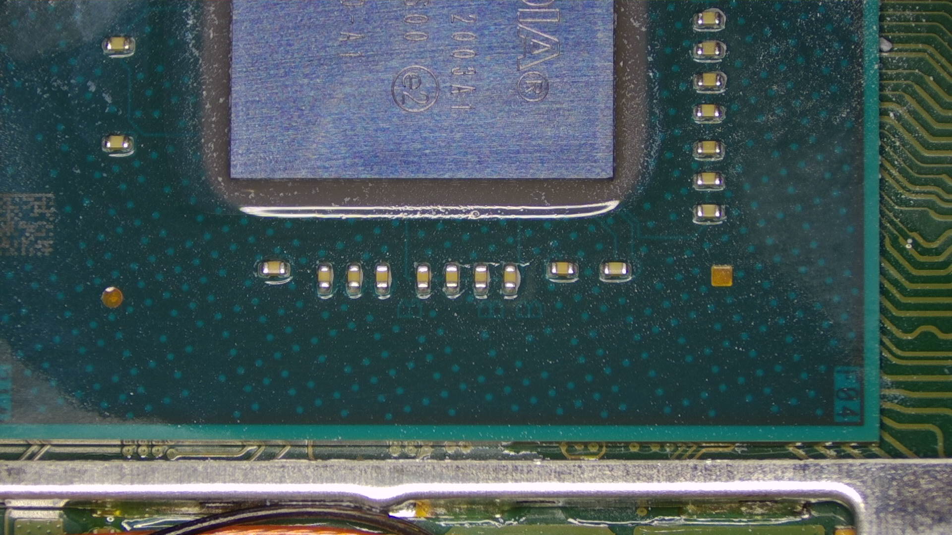 Locate the SoC and ensure your working area is clean, you do not want to have thermal paste interfere with your soldering tin. This can also cause corrosion over time if you don't clean the area properly.