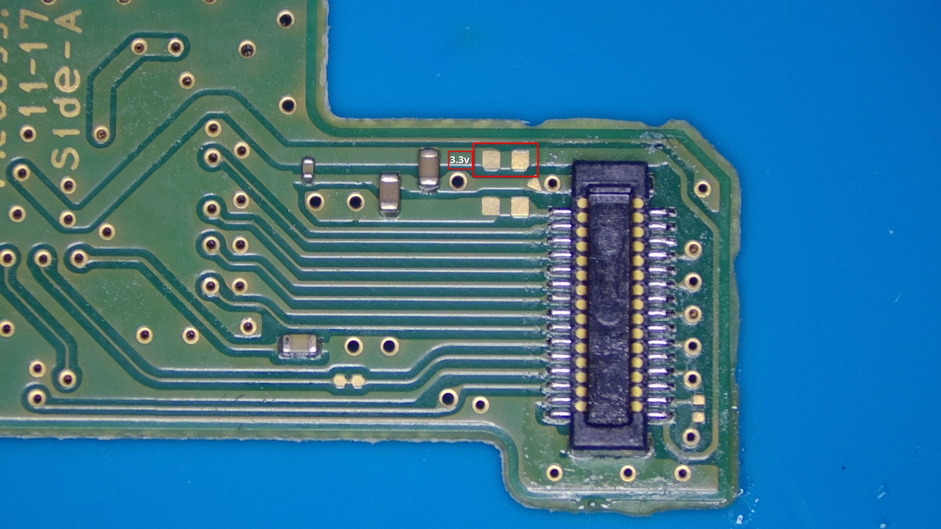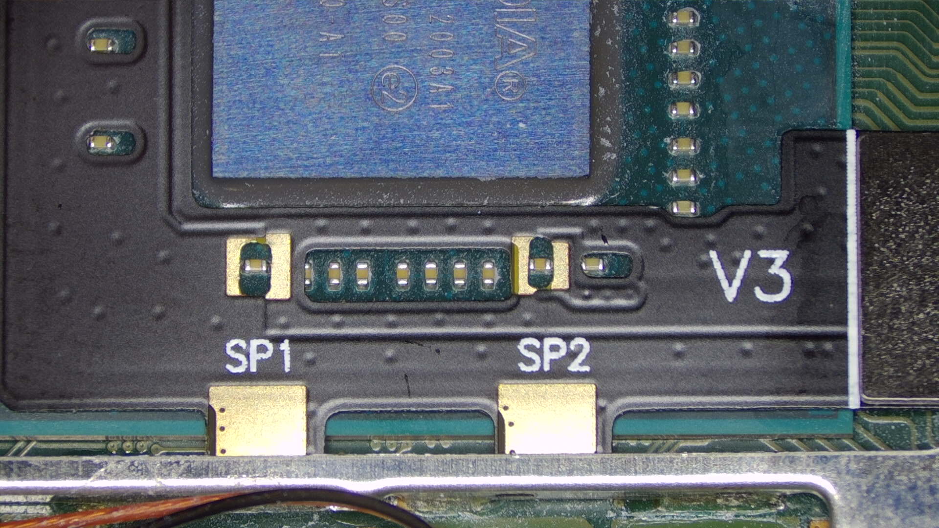 Move on to the area above the SoC. In the image below, the required pads are outlined and named.
