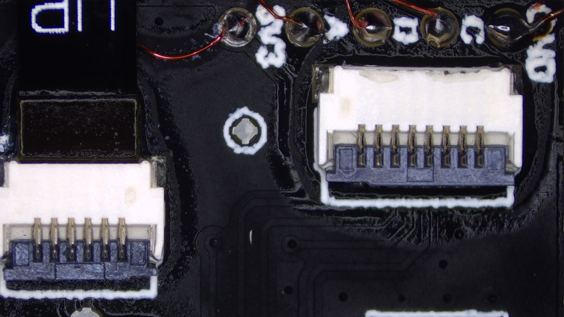 Solder the wires onto each point now. Make sure there's a solid connection between the pads on the board and your wire. I've scraped the solder mask off of the via at the